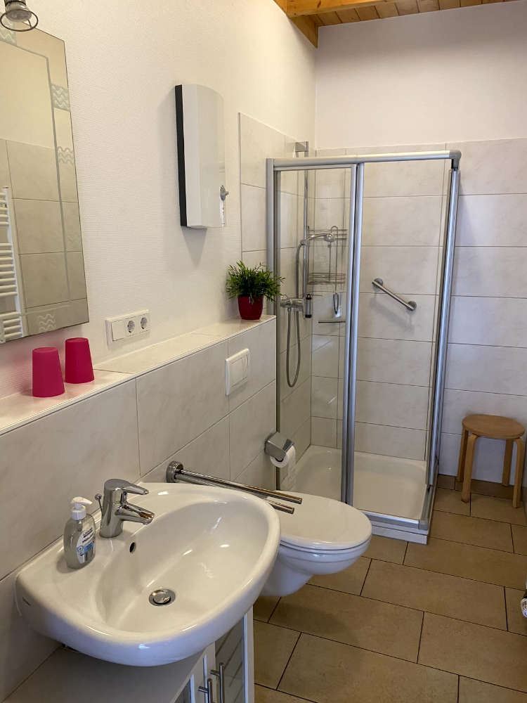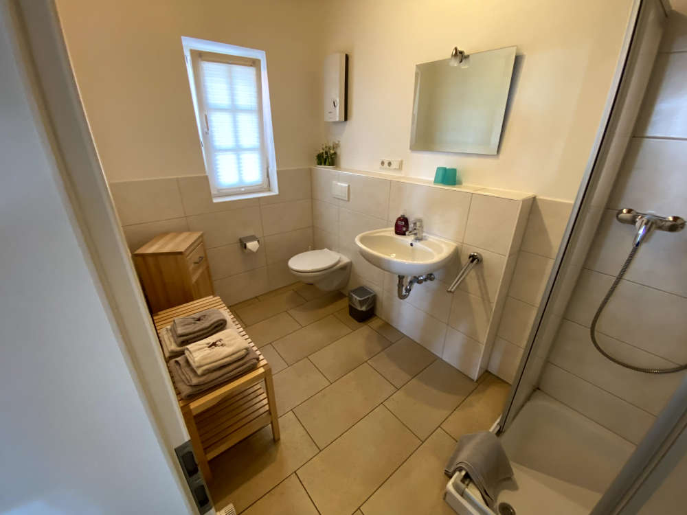 - modernes Bad mit Dusche, WC und Fußbodenheizung
