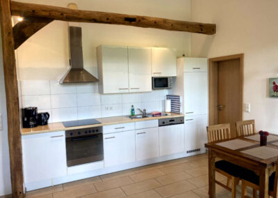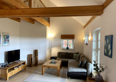 Die alte Remise ist zu unseren Ferienwohnungen 2 und 3 umgebaut worden. Dabei haben wir sehr darauf geachtet den Stil der alten Zeit einzufangen. Mit ca. 82m² bietet die Ferienwohnung 2 „Remise“ Platz für bis zu 5 Personen: