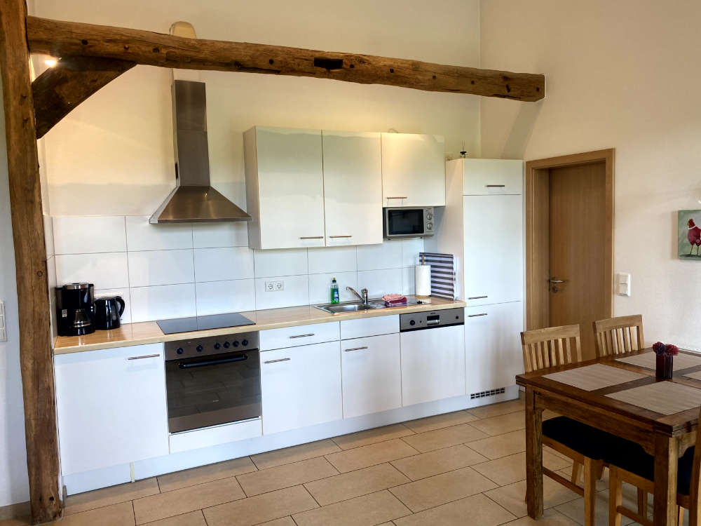 Die Wohnung „Brunnen“ bietet mit ca. 80m², ähnlich wie unsere Remise, Platz für maximal 4 Personen: